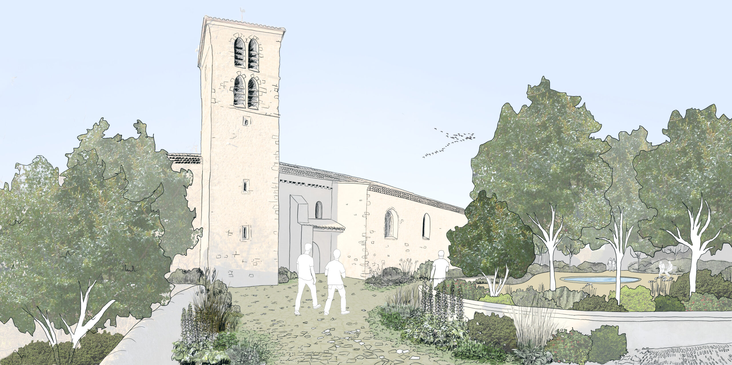 En 2023, notre équipe a remporté le concours pour l’aménagement des abords de l’église et du jardin public de Barbaira, site emblématique situé au pied de la Montagne Alaric. Ce projet vise à mettre en valeur le patrimoine fortifié et paysager du village tout en offrant de nouveaux espaces conviviaux et fonctionnels aux habitants.